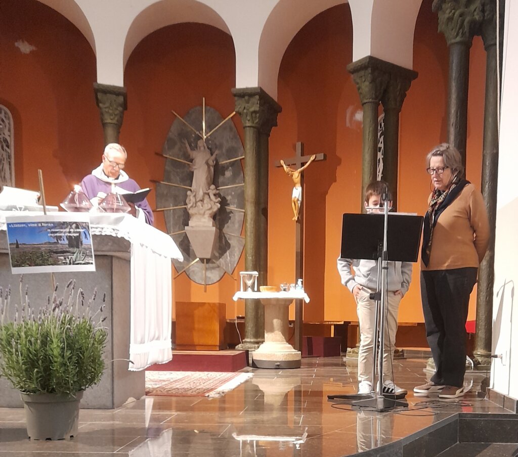Abans de començar la Missa, en Toni ens ha llegit un petit text que ens ha ajudat a preparar-nos interiorment per a la celebració. En aquest comentari ha fet referència a l’Evangeli de la resurrecció de Llàtzer, un signe d’esperança i de vida nova que ens recorda que Déu sempre ens crida a sortir de les nostres foscors.